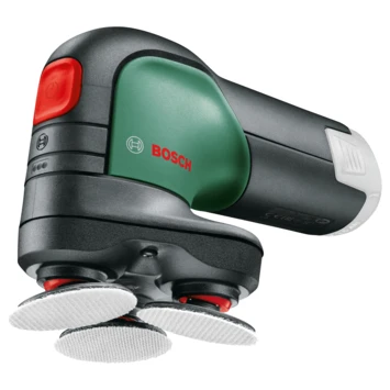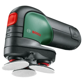 De Bosch accuschijfschuur- & polijstmachine EasyCurvSander 12 kan schuren en polijsten op vlakke, gebogen en afgeronde oppervlakken. Dit komt door de drie roterende en beweegbare schijven. De machine heeft een traploze toerentalinstelling voor verschillende materialen en toepassingen. Door de Syneon-chip wordt het energiegebruik geregeld voor optimale efficiëntie en langere gebruikstijd. De Bosch accuschijfschuur- & polijstmachine EasyCurvSander 12 wordt geleverd inclusief opzetstuk voor stofafzuiging. Â