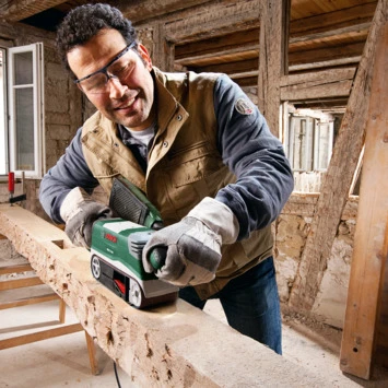 Een bandschuurmachine waarmee je eenvoudig grote oppervlakken schuurt. De robuuste Bosch bandschuurmachine PBS 75 AE Set heeft een 750-watt-motor en dus een groot vermogen. Bovendien heeft de machine een hoge afname, zodat je snel een flinke laag van de desbetreffende ondergrond afschuurt. Dankzij zijn ergonomische en compacte ontwerp garandeert deze bandschuurmachine een optimale hantering bij je schuurklussen. Dankzij de automatische bandcentrering blijft de schuurband te allen tijde op de juiste positie. Zo kun je snel en zo optimaal mogelijk schuren. Kortom: een kwalitatieve schuurbandmachine voor grote en zware klussen.