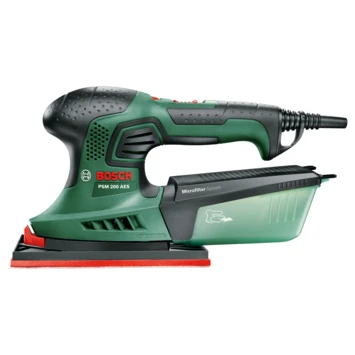 De PSM 200 AES Handpalmschuurmachine van Bosch is een echte allrounder. Dankzij de traploos regelbare toerentalinstelling is de machine geschikt om elk materiaal te schuren. Dankzij de krachtige motor van 200 watt is het apparaat ook opgewassen tegen grotere klussen. Handig is het verwisselbare schuurplateau, waarmee u beschikt over een multi- en vlakschuurmachine in één. Het achterste deel van het schuurplateau blijft in positie, de deltavormige punt is flexibel aangebracht en kan worden gedraaid. Zo kunt u met deze handpalmschuurmachine zowel hoeken, randen als grotere oppervlakken schuren. Met de klithechting verwisselt u snel en eenvoudig het schuurpapier. De stofbox zorgt voor een schone en stofvrije werkomgeving. Kortom: de PSM 200 AES is een waardevolle toevoeging op uw gereedschapsuitrusting.
