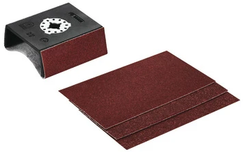 Schuurplateau met Starlock-opname voor maximale krachtoverdracht met driedimensionaal snelspansysteem (SDS). Materialen: hout/houtmaterialen, hard-/zacht hout, spaanplaat, metaal, roest, verf en lak, vulmateriaal en plamuur.